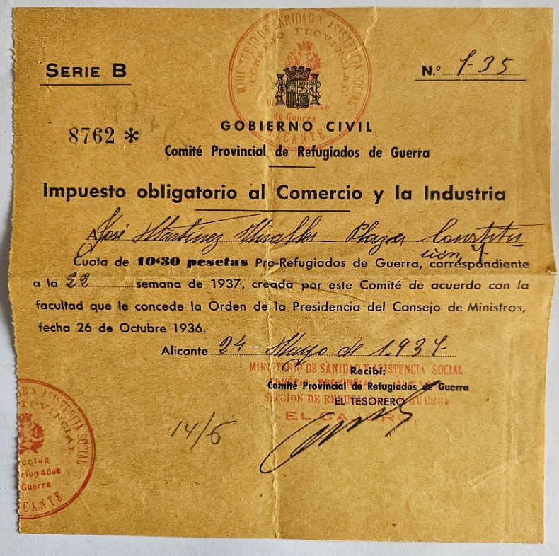 Se pueden encontrar viñetas del comité de refugiados de Alicante de 0.10 pesetas